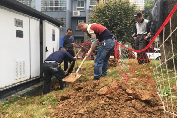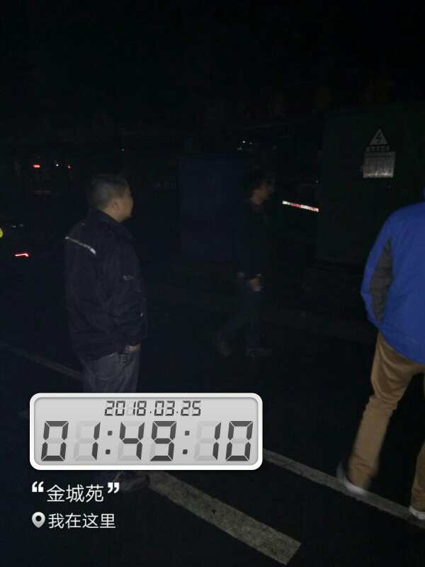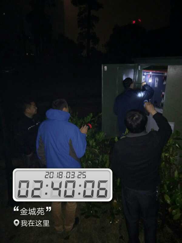 除了志愿者们,小区内另一个地方也在进行紧张的工作,那是金泉物业的工作人员和电力局的技术人员在抢修变电箱和电力线路。近日来的绵绵春雨和潮湿浸染,在昨晚突然造成了小区一部分电力线路的故障,虽已夜深,但工作人员仍坚守岗位,整夜工作在一线。为了能尽快修复电力线路,缓解小区业主的焦虑和解除他们的不便,金泉物业的工作人员耐心向业主们解释说明,并抓紧组织抢修工作,马不停蹄,任劳任怨。
